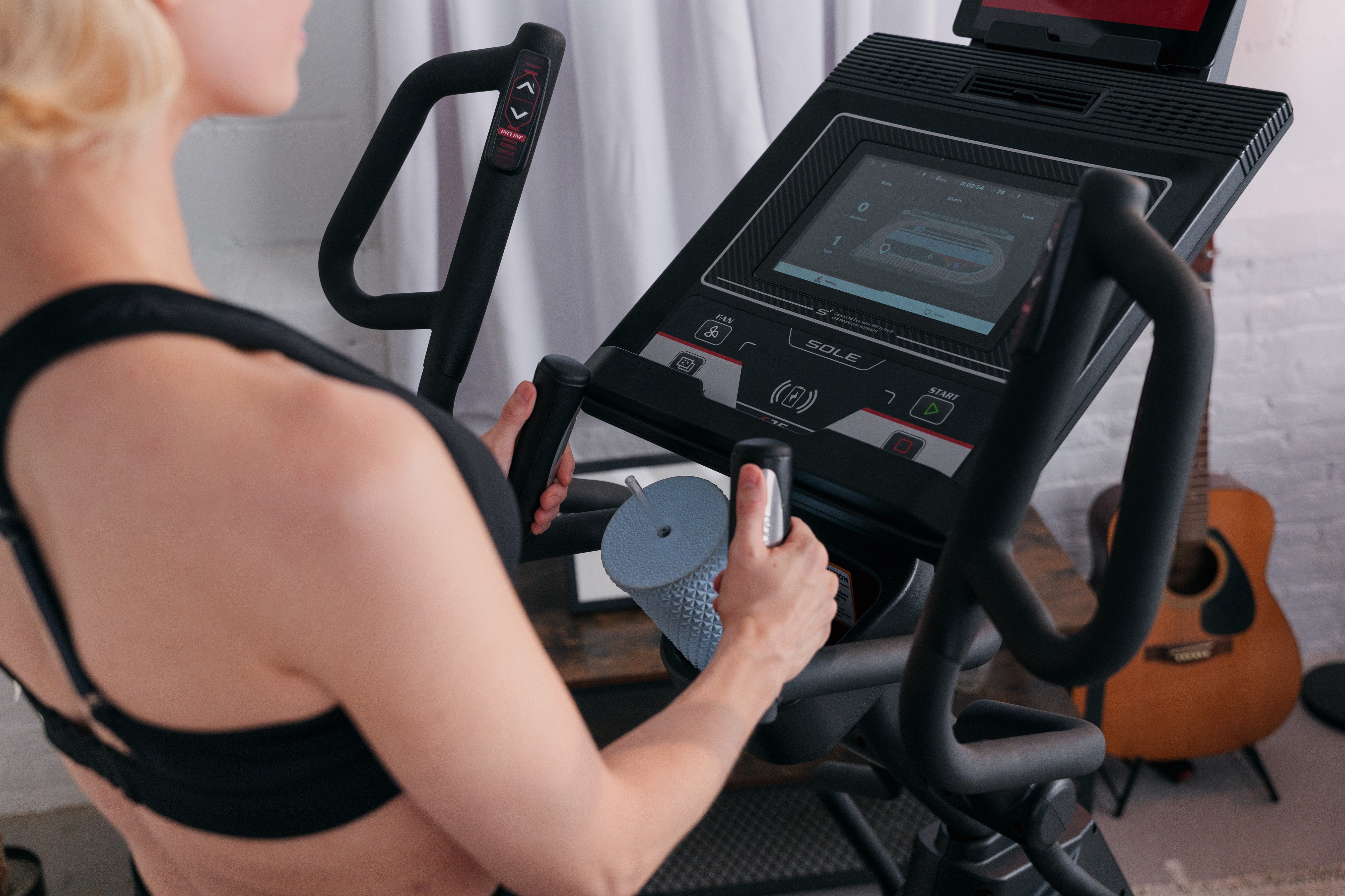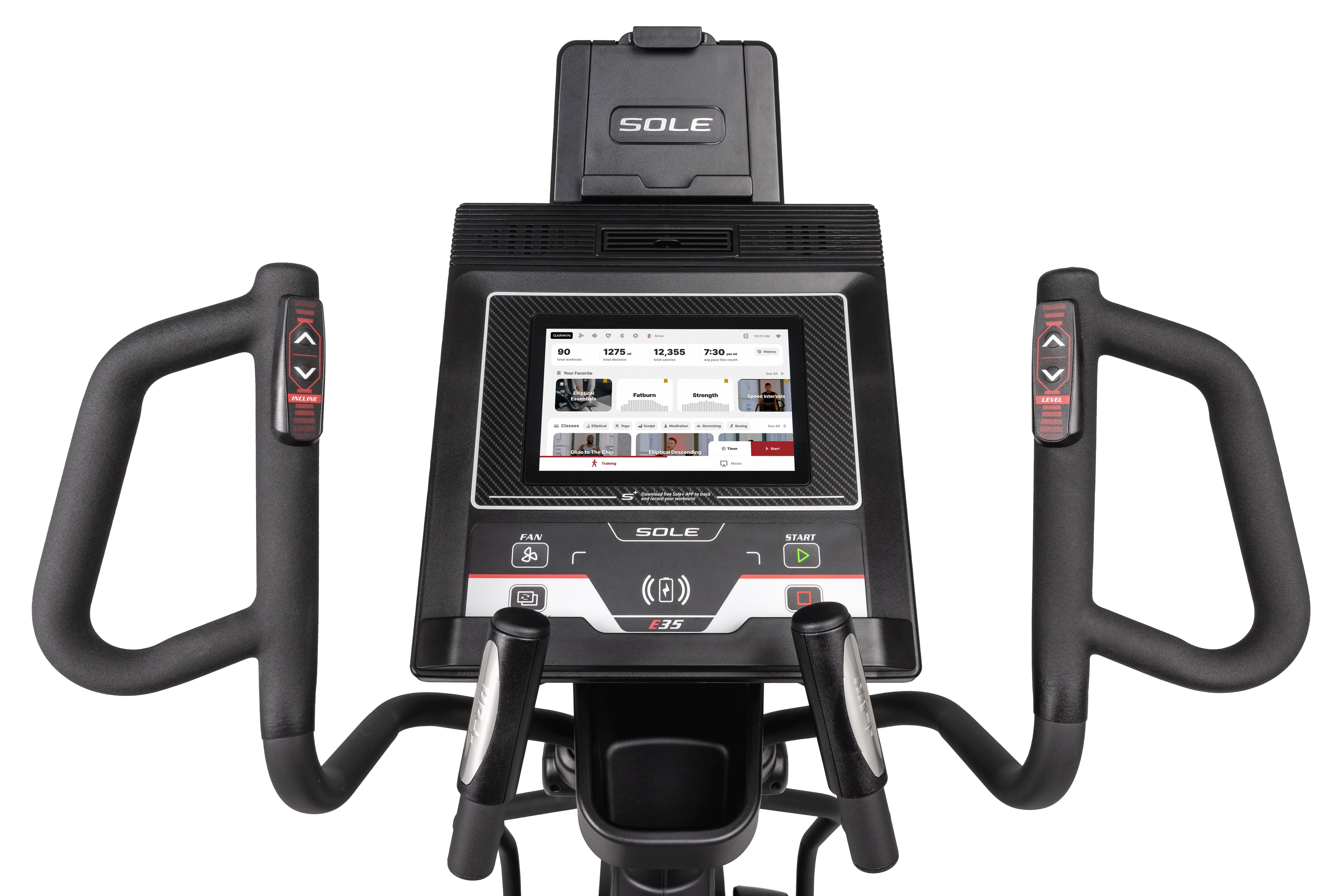 La SOLE E35 es una elíptica premium diseñada para quienes buscan entrenamientos completos, silenciosos y conectados, con la comodidad de entrenar en casa.